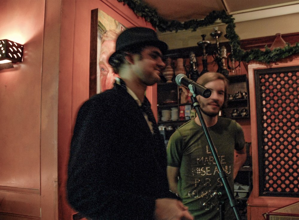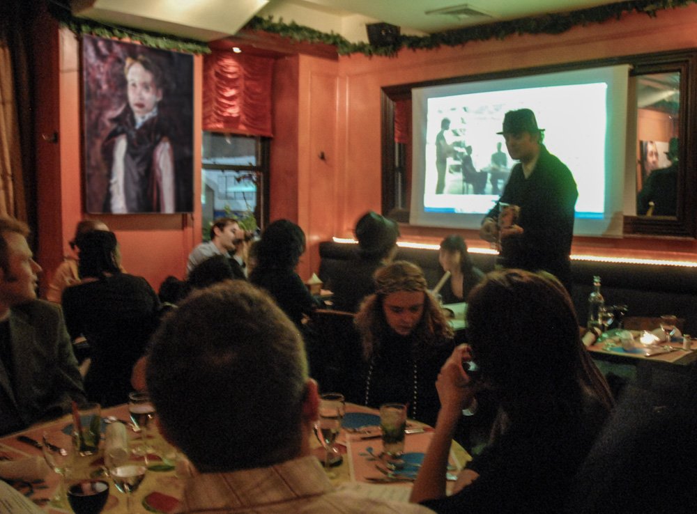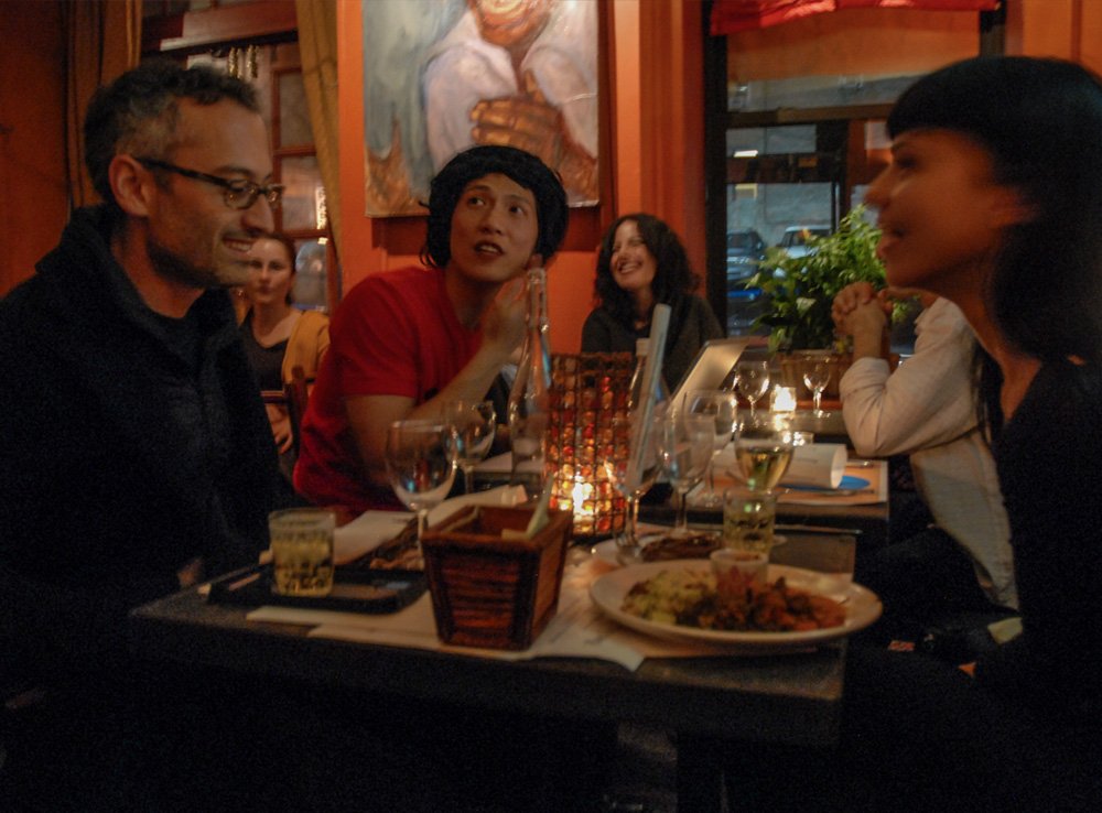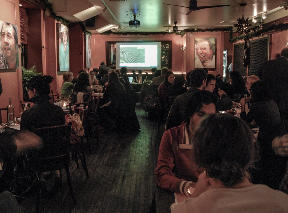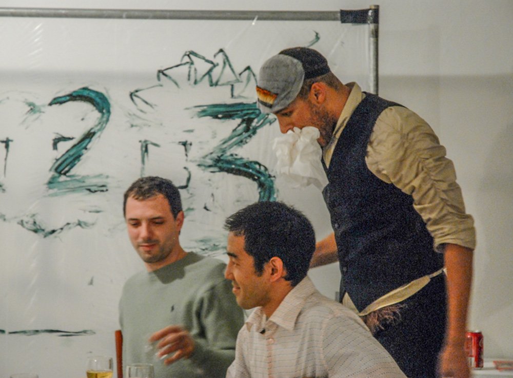At Monkeytown in Brooklyn, Nguyen and Rubinfeld hosted a final dinner-performance to ceremoniously pass the torch to Doeringer and Vara. The evening featured a screening of a short comedic film documenting the interviews and the duo’s journey, complete with video well-wishes from family and figures in the art world. Vara and Doeringer concluded the event with a PowerPoint presentation outlining their vision for Art Hijack 2.0.